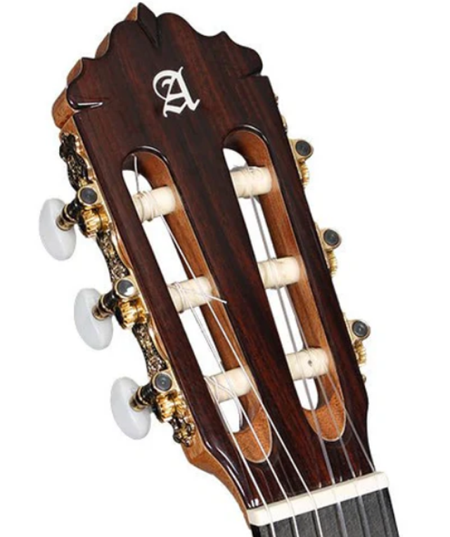 Modell 5 F ist ein Instrument mit einem sehr flamencoartigen Klang und Gefühl. Ein perkussiver und kraftvoller, aber dennoch sauberer Klang, bei dem das Klimpern außergewöhnlich klingt.