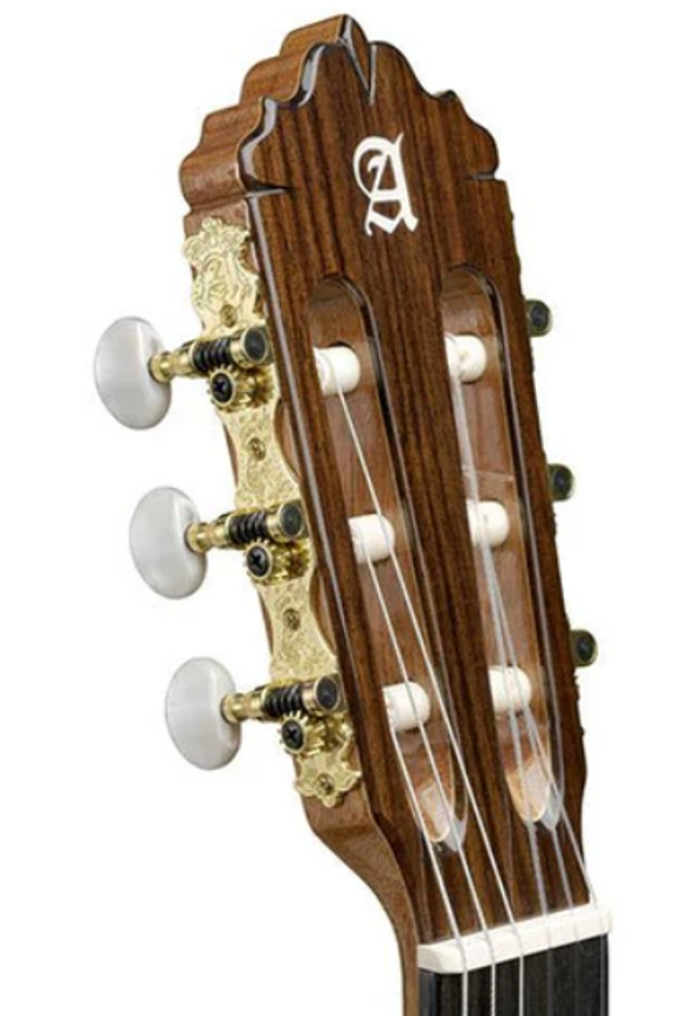 Das 5P-Modell von Alhambra Guitars stellt die Weiterentwicklung des erfolgreichen 4p dar. Seine Konstruktion sorgt für einen robusteren Korpus, wobei charakteristische Details wie die vier Lackschichten, das Griffbrett aus Ebenholz, die Stimmmechaniken höchster Qualität und das erlesene indische Palisanderholz für die Seiten und die Rückseite erhalten bleiben.