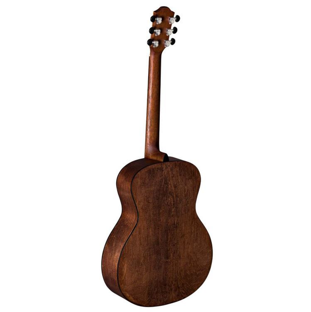 Auditorium, Decke massive kanadische Zeder, Boden & Zargen gemasertes Ahorn, Hals Mahagoni, Griffbrett & Steg Ovangkol, 20 Bünde, Sattel & Stegeinlage Nubone, Saiten Elixir, Bindings black ABS, Finish natur/archaic dark brown matt offenporig, Mechanik diecast matt chrom mit schwarzen Flügeln, Mensur 630mm, Sattelbreite 46mm.