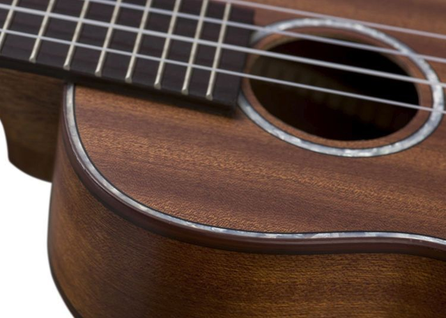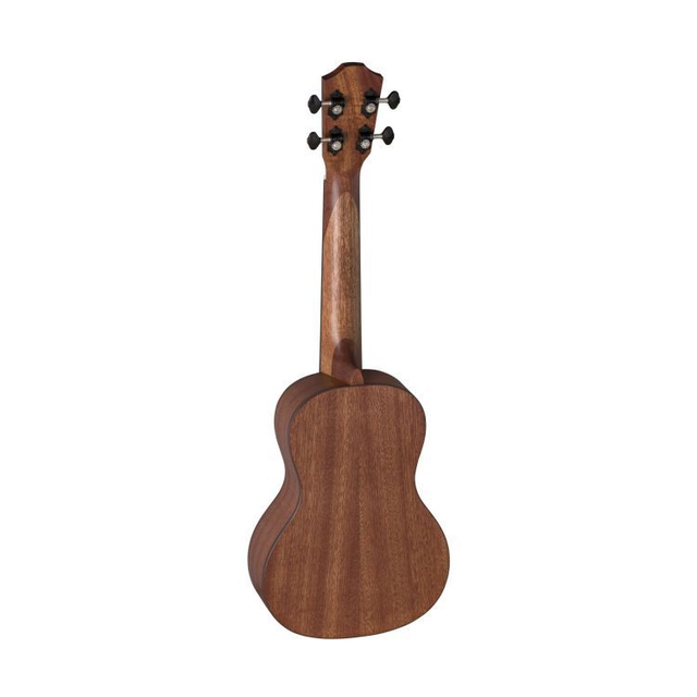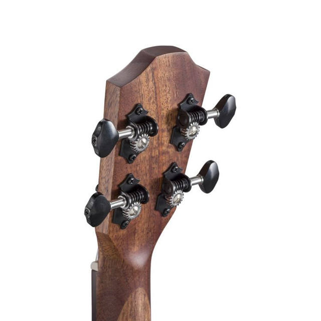 Concert Ukulele, Korpus Mahagoni, Hals Mahagoni, Griffbrett & Steg Walnuss, 18 Bünde, Sattel & Stegeinlage Nubone, Saiten Aquila Nylgut, Bindings rw ABS, Finish natur matt offenporig, offene Gitarrenmechaniken schwarz/chrom mit schwarzen Flügeln, Mensur 375 mm, Sattelbreite 38 mm