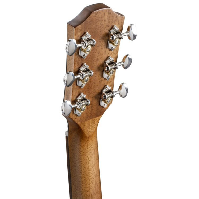 OM, Decke Fichte massiv, Boden & Zargen Pau Ferro, Hals Okoume, Griffbrett & Steg Laurel, 21 Bünde, Sattel & Stegeinlage Knochen, Saiten Elixir, Bindings Ahorn, Finish chocolate burst gloss top - satin b&s, Mechanik antique chrom, Mensur 630 mm, Sattelbreite 46 mm.