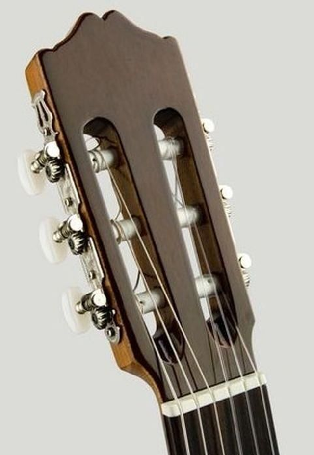 Decke Zeder massiv, Boden/Zargen Mahagoni, Hals Mahagoni, Griffbrett und Steg Palisander. Glanzlackiert. Mensur 545 mm. Sattelbreite 50 mm.