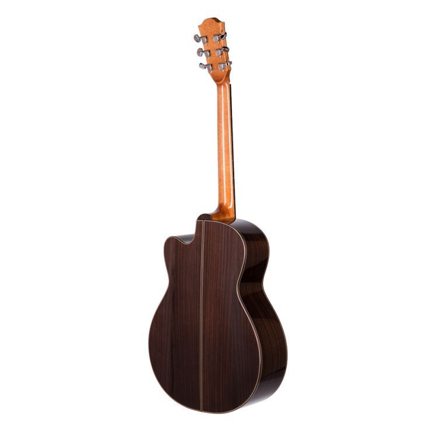 Grand Auditorium Cutaway Elektrik, Decke massive Schweizer Alpenfichte, Boden & Zargen ostindischer Palisander, Hals Cedro mit 2 Wege Halsstab, Griffbrett & Steg Ebenholz, Sattel Knochen, Finish Natur hochglanz, Mechanik geschlossen verchromt, Binding ostindisches Palisander, Elixir Nanoweb, Mensur 650 mm, Sattelbreite 45 mm, Pickup Mi-Si. Jedes Instrument wird vor dem Versand in der Schweiz oder in Deutschland (Tübingen) baulich und klanglich optimiert.